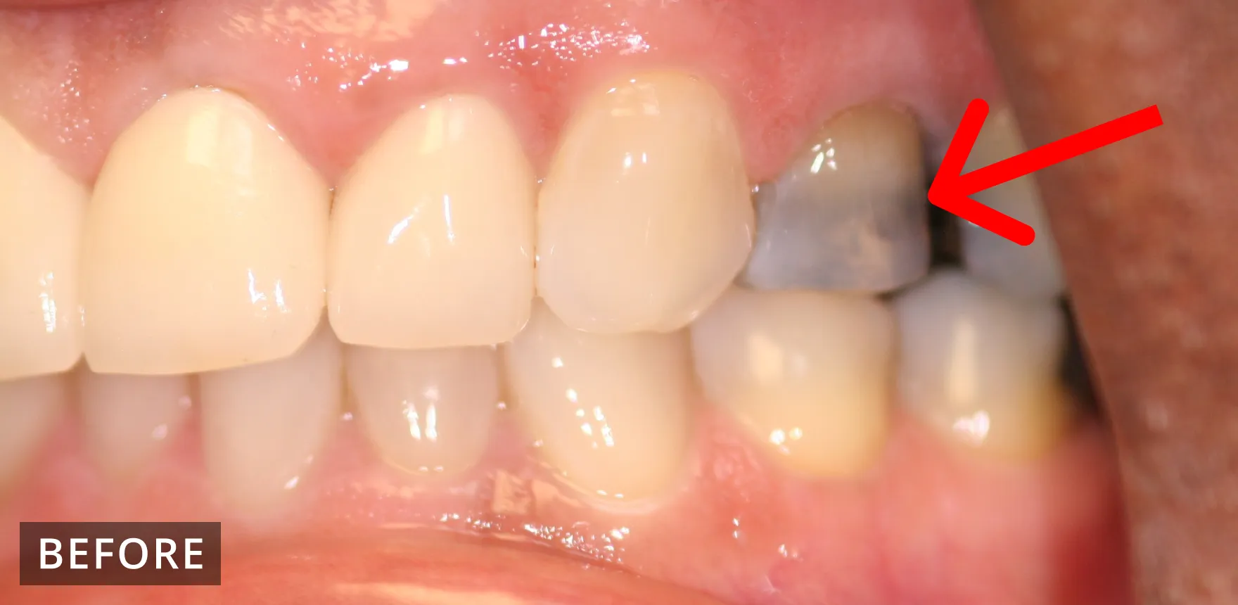 Single Implant: Tooth previously filled with large silver filling - fractured, requiring removal and replacement with single implant